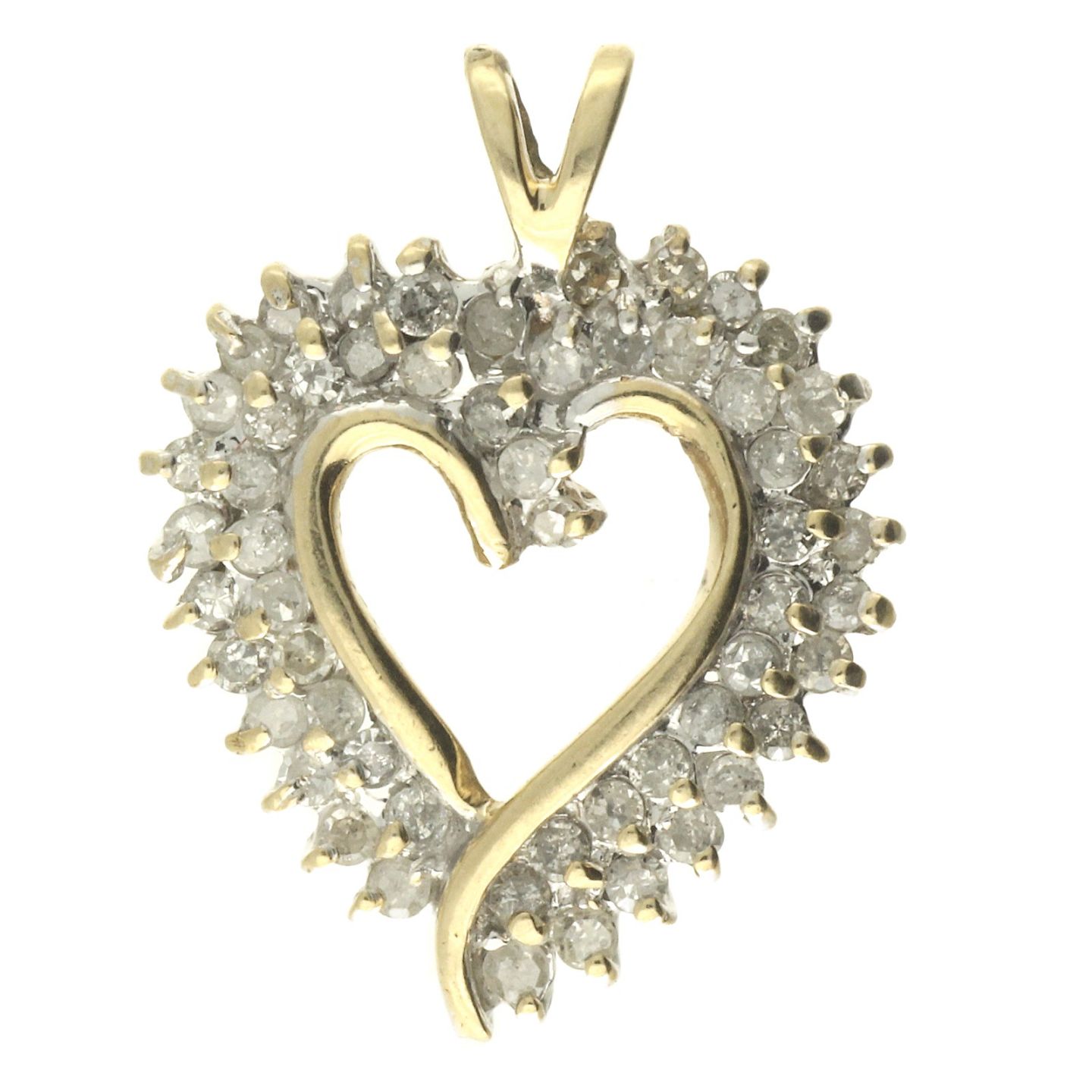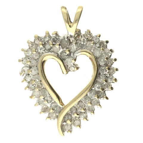 Hjertevedhæng udført af 14 kt. guld fattet med talrige brillanter på i alt ca. 0.56 ct. L. inkl. øsken: ca. 25 mm. Vægt: ca. 2,98 gr.