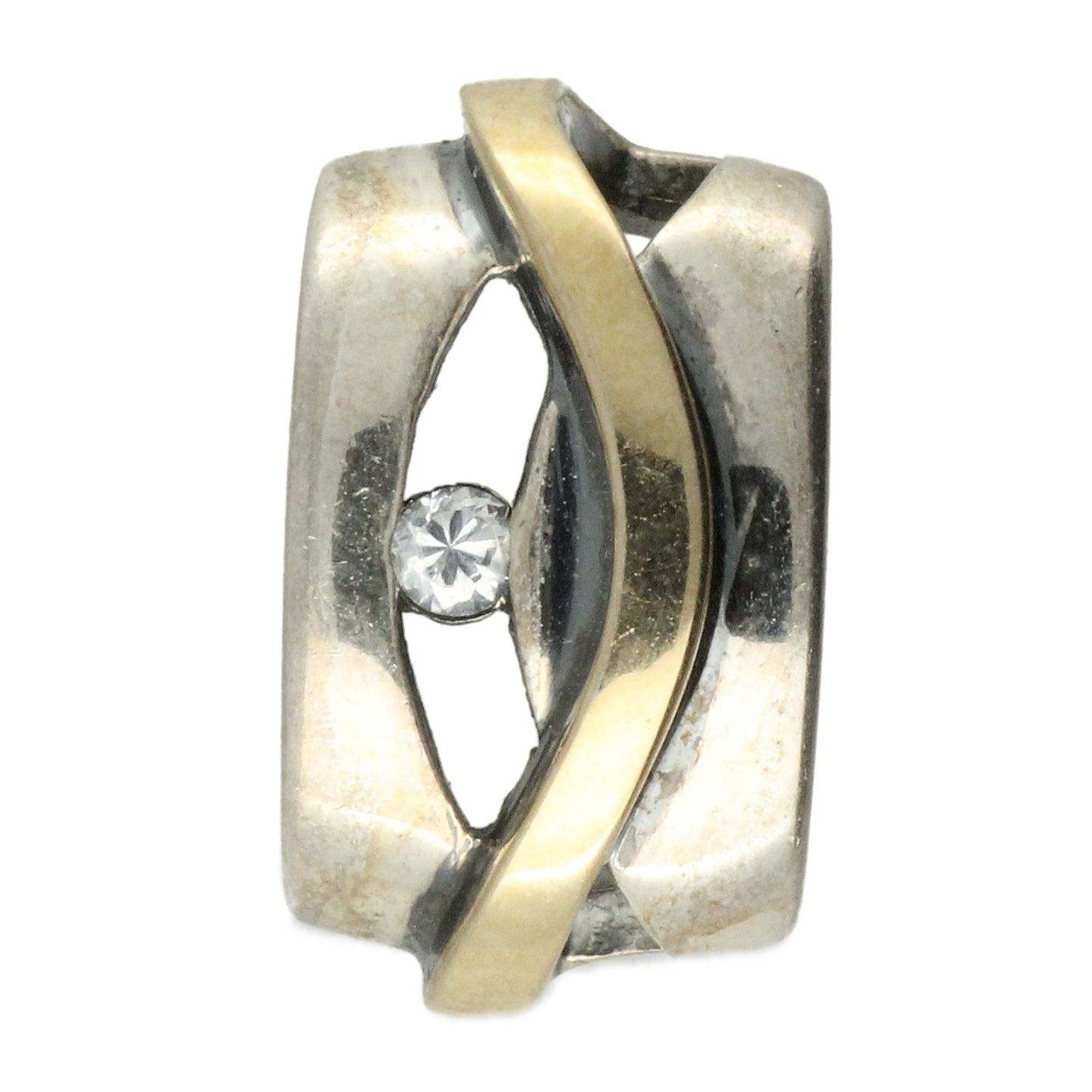 Vedhæng af sterling sølv og guld fattet med klar sten. L. ca. 1,7 cm. Vægt: ca. 3,5 gr.