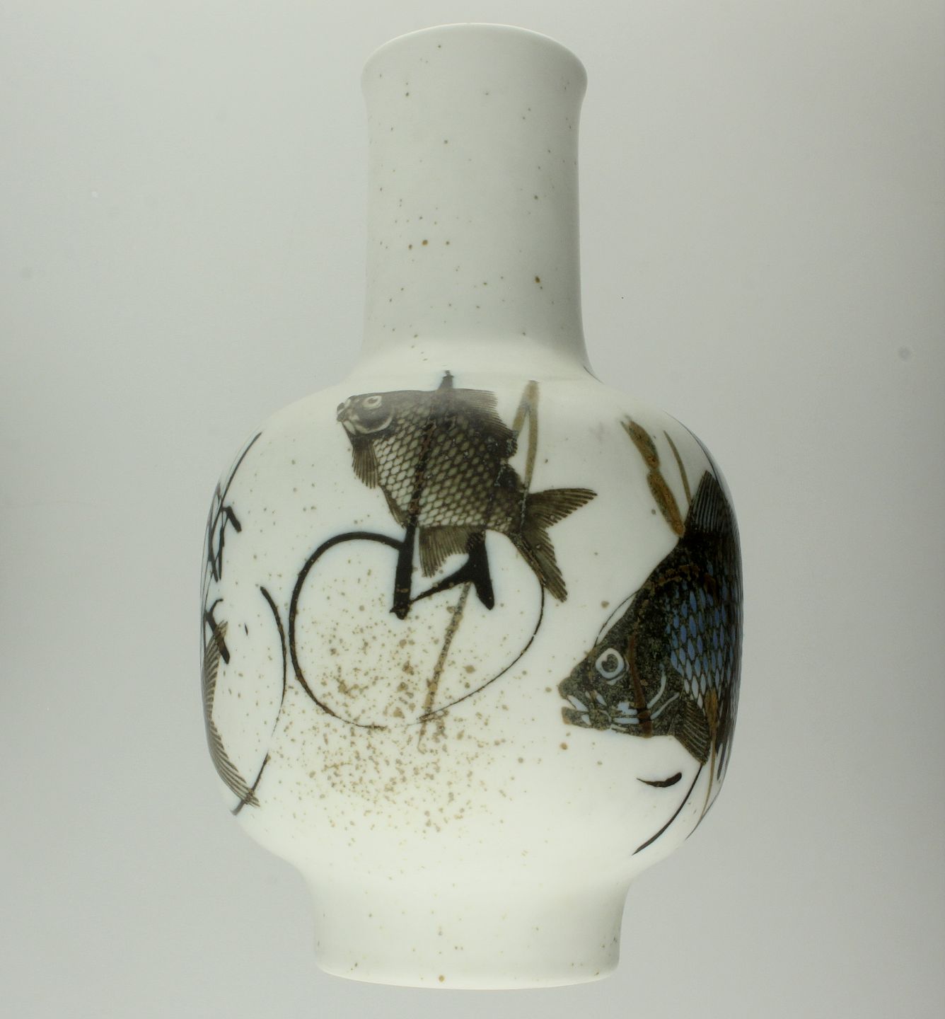 Nils Thorssen for Royal Copenhagen - Diana vase af fajance nr. 1063-5367, dekoreret med fisk. H. 18 Ų. 10 cm. 1. sortering.