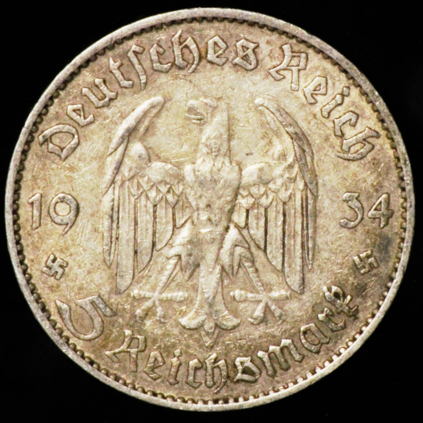 Tyskland - 5 Reichsmark - 1934 - F - Potsdam Garrison Church - KM# 83 - sølv
