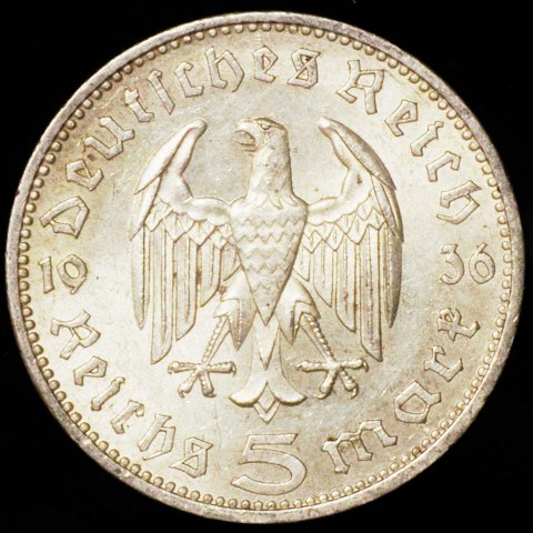 Tyskland - 5 Reichsmark - 1936 - A - Paul von Hindenburg - Sølv - KM# 86