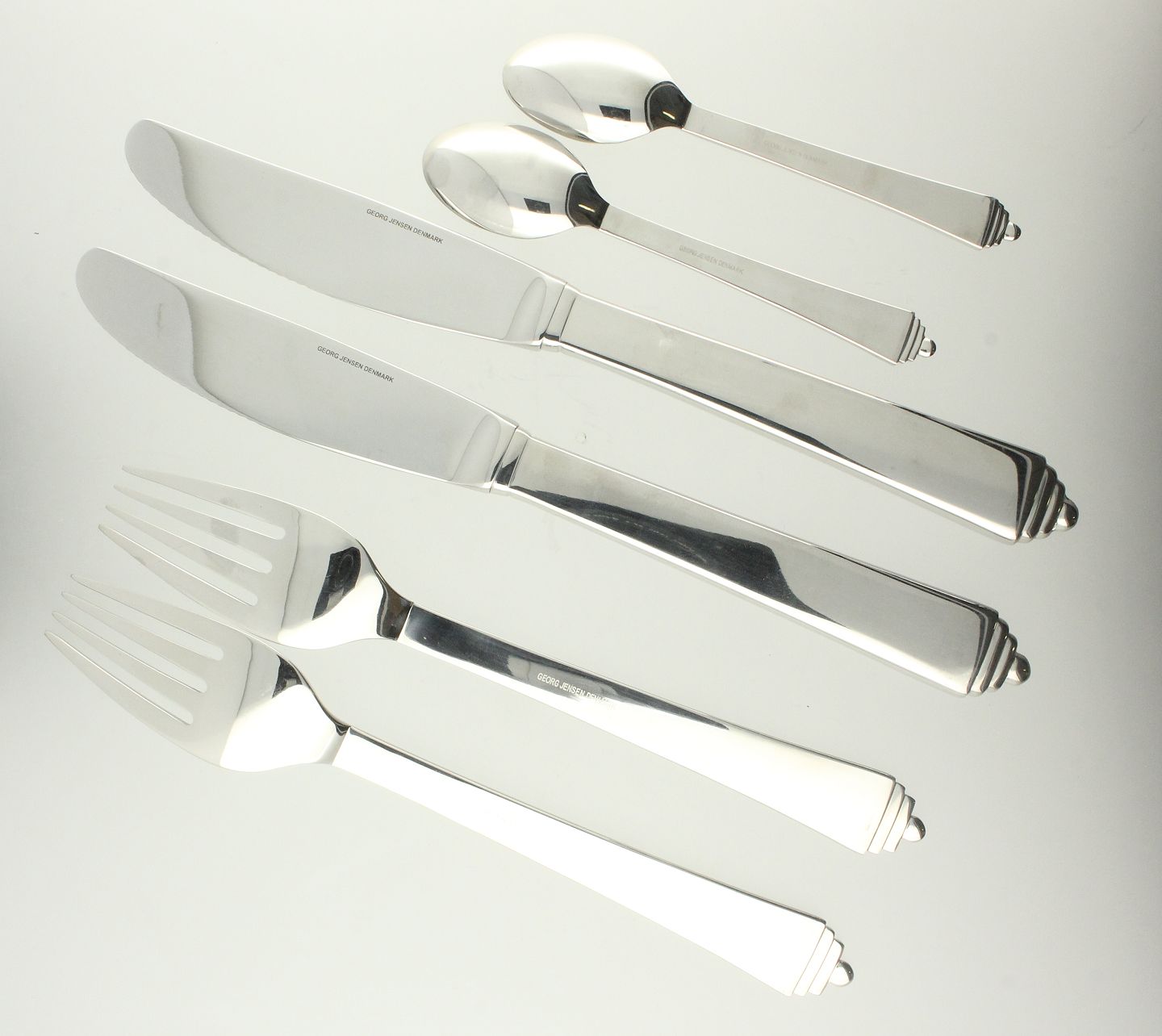 Harald Nielsen for Georg Jensen - 'Pyramide' bestik af stål - 6 dele bestående af: