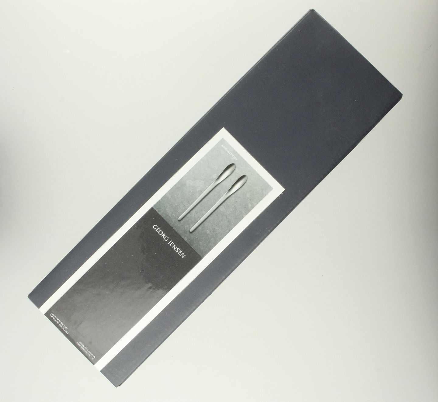 Arne Jacobsen for Georg Jensen - To kaffe latte skeer af stål. I original emballage.