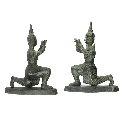 To orientalske figurer af bronze. H. ca. 13 cm.