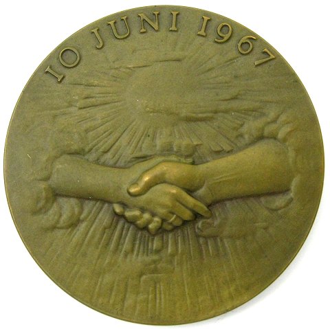 Prinsesse Margrethe og Prins Henrik bryllupsmedaille 10. juni 1967 af bronce. Diam. 55 mm., vægt 72,2 gr.