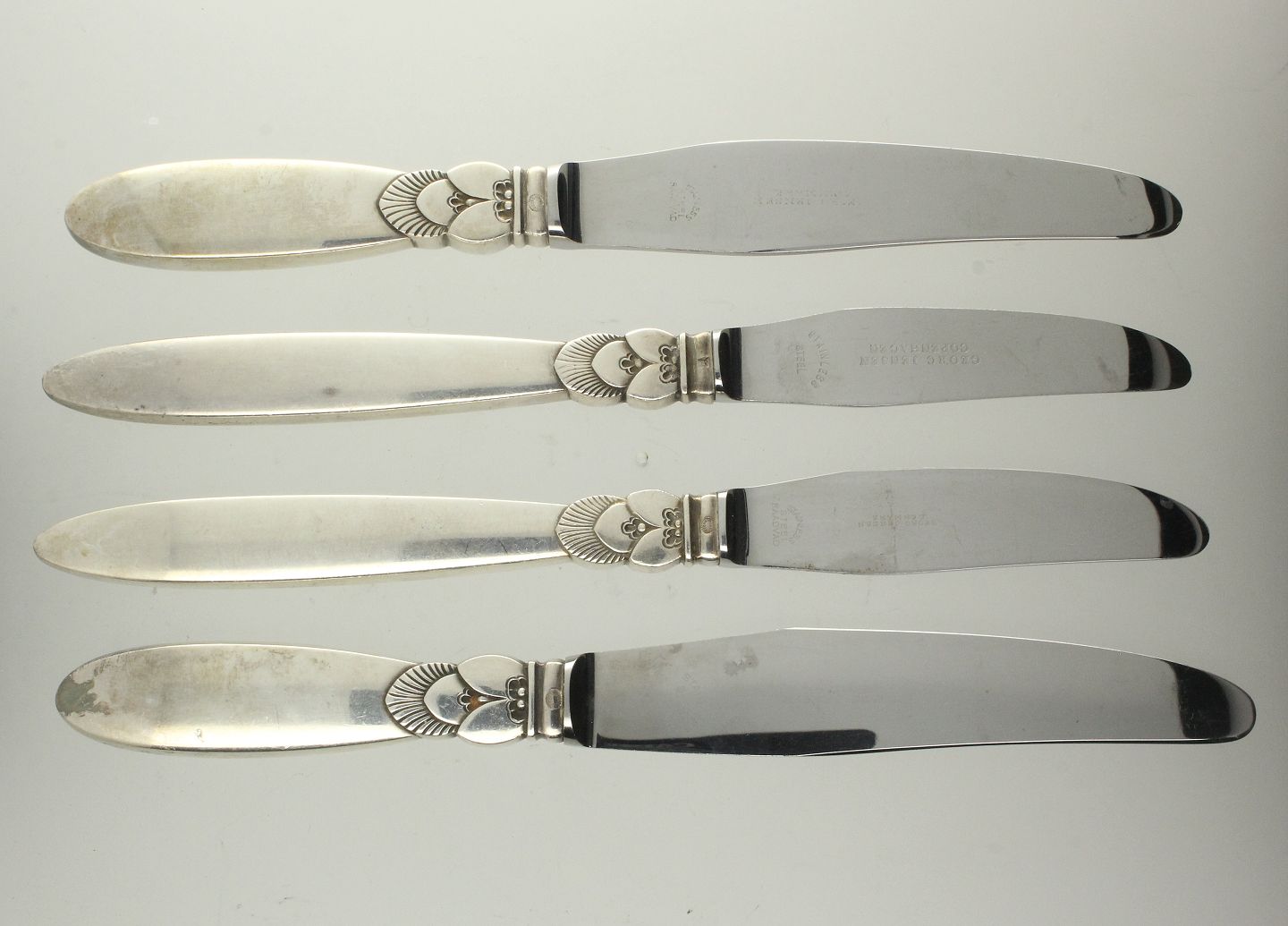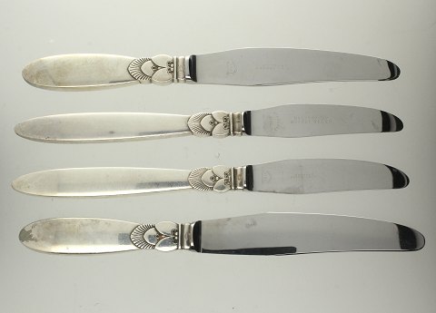 Gundorph Albertus for Georg Jensen - Kaktus - Fire knive med skafter af sterling sølv, raadvad blade af stål. L. ca. 20,5 cm.