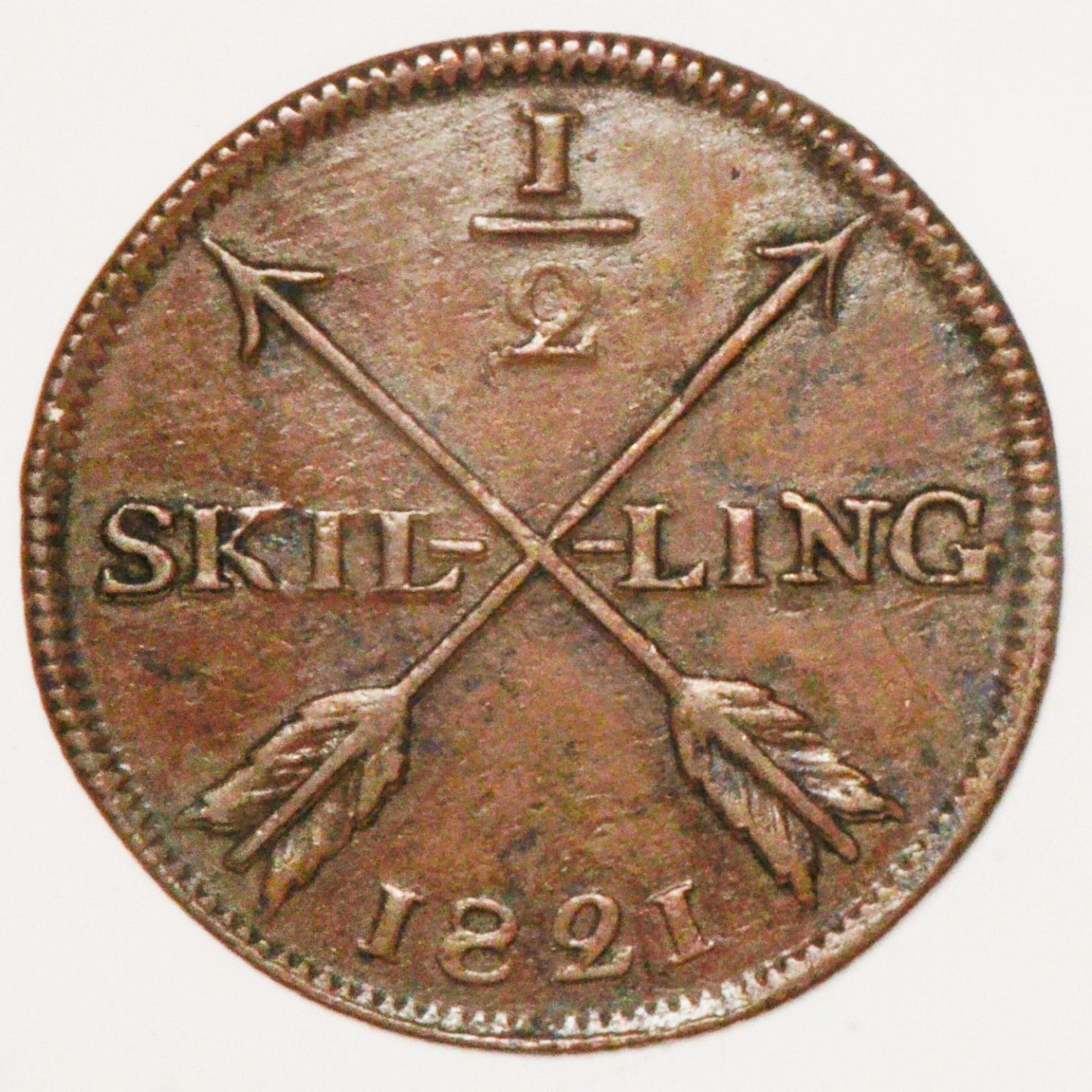 Sverige - ½ Skilling - 1821 - Charles XIV Johan - KM# 596