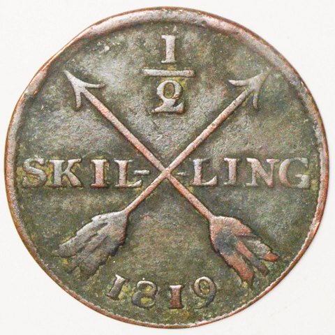 Sverige - ½ Skilling - 1819 - Charles XIV Johan - KM# 596