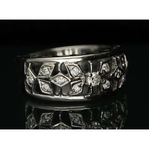 Brilliantring udført af 14 kt. hvidguld prydet med 13 diamanter på i alt ca. 0.30 ct. Farve: Top Wesselton (G). Klarhed: VVS. Centersten - klarhed: River.
