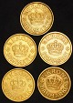 Samling gamle danske gule ½ kroner (5) - (1924-1940) - Komplet Sæt
