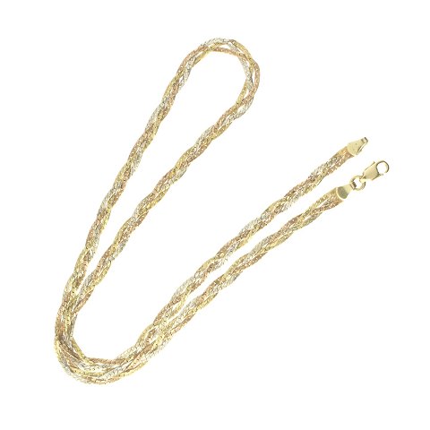 Halskæde udført af trefarvet 14 kt. guld. Længde: 45 cm. Vægt: ca. 11,83 gr.