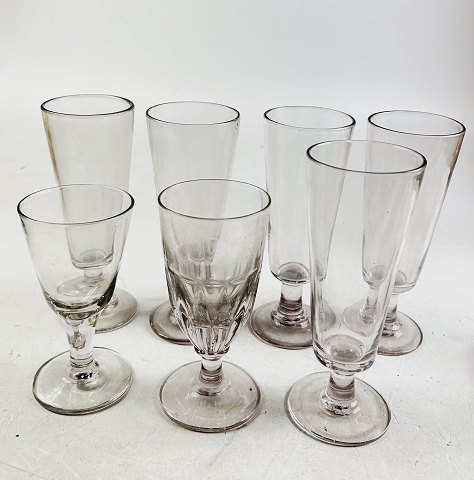 Syv ældre glas. Varierende højder fra: ca. 16-21 cm.