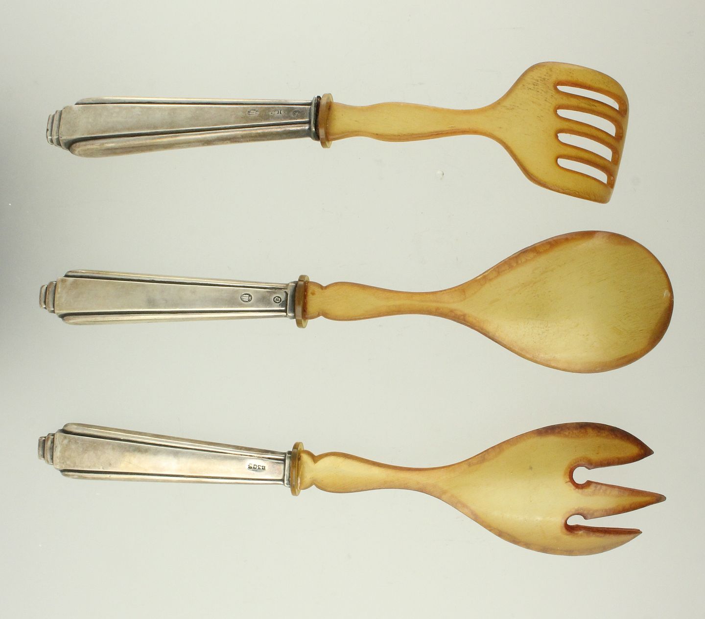 Tre dele tagtøj med skafter af 830 sølv. L. ca. 16-17,5 cm. Samlet vægt: ca. 58 gr.