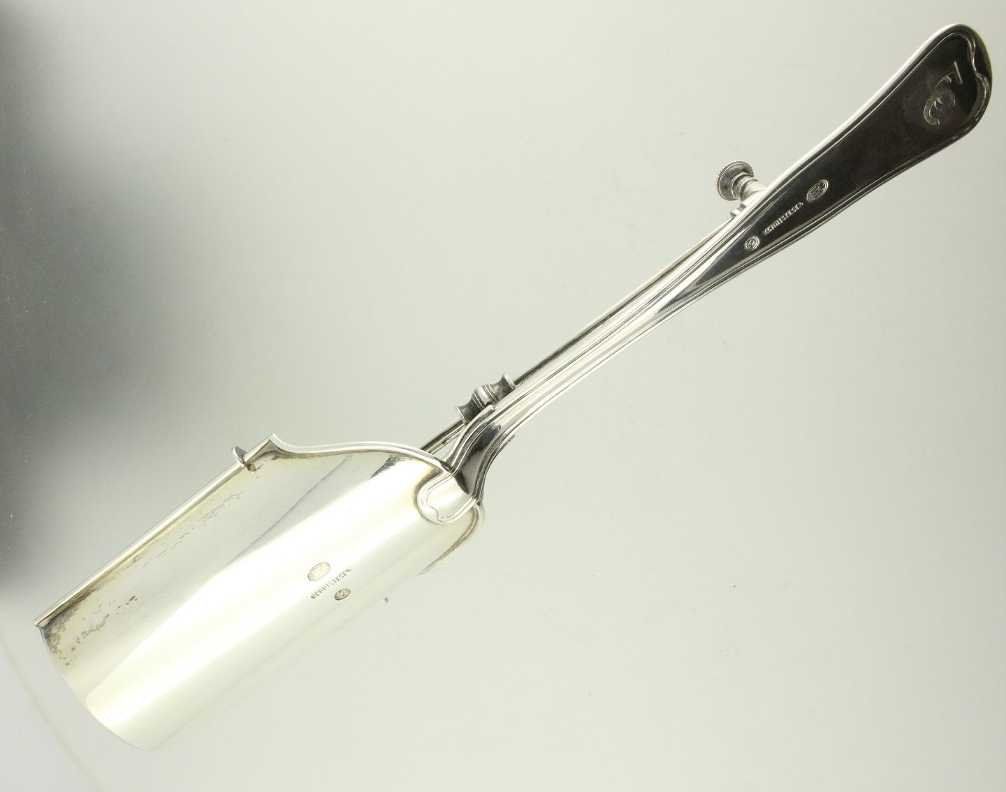 Osteske med afskubber af tretårnet sølv. L. ca. 24 cm. Vægt: ca. 142 gr.