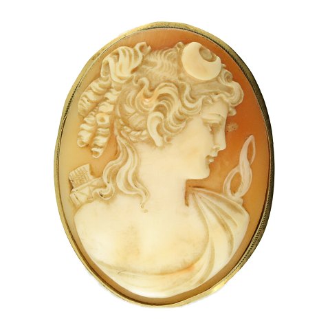 Camé broche udført af 18 kt. guld. L. 4,7 cm.