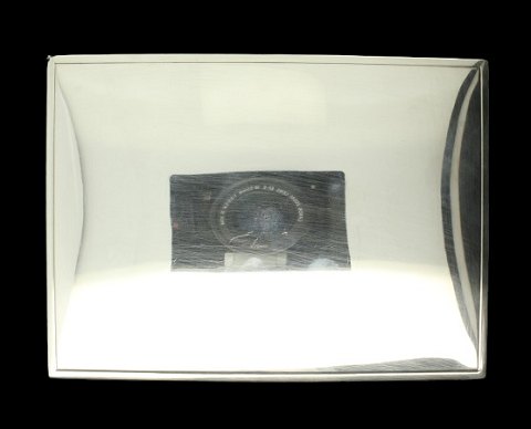 Skrin af 830 sølv med indsats af træ og bundplade af metal. Mål: H. 4,5 B. 15 D. 11 cm.