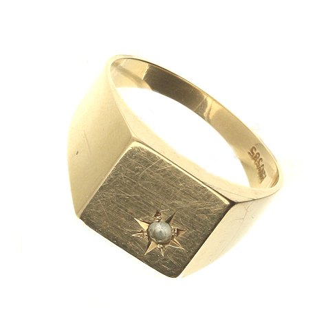 Herrering af 14 kt. guld fattet med klar sten. Ringstr: 64. Vægt: ca. 6,21 gr.