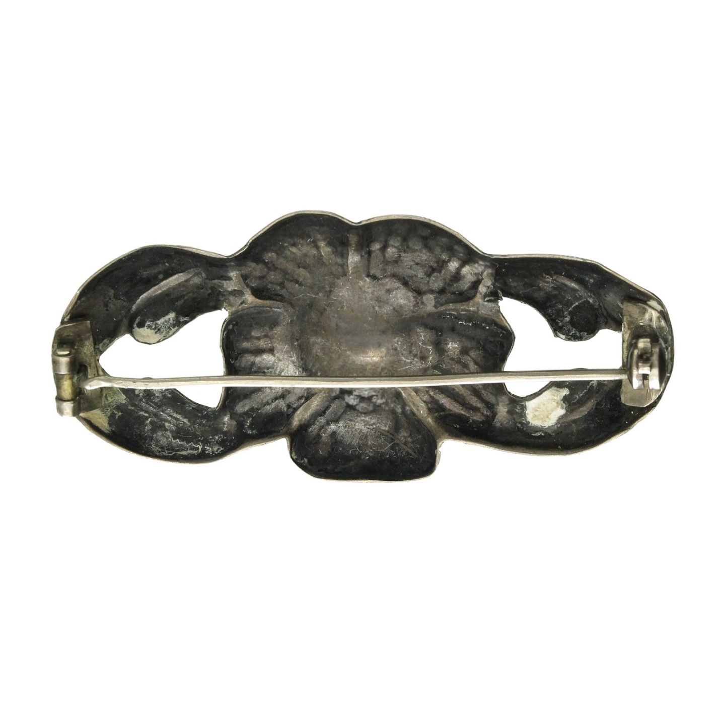 Skønvirke broche af 830 sølv fattet med rav. L. 5,5 cm. Vægt: ca. 6,4 gr.