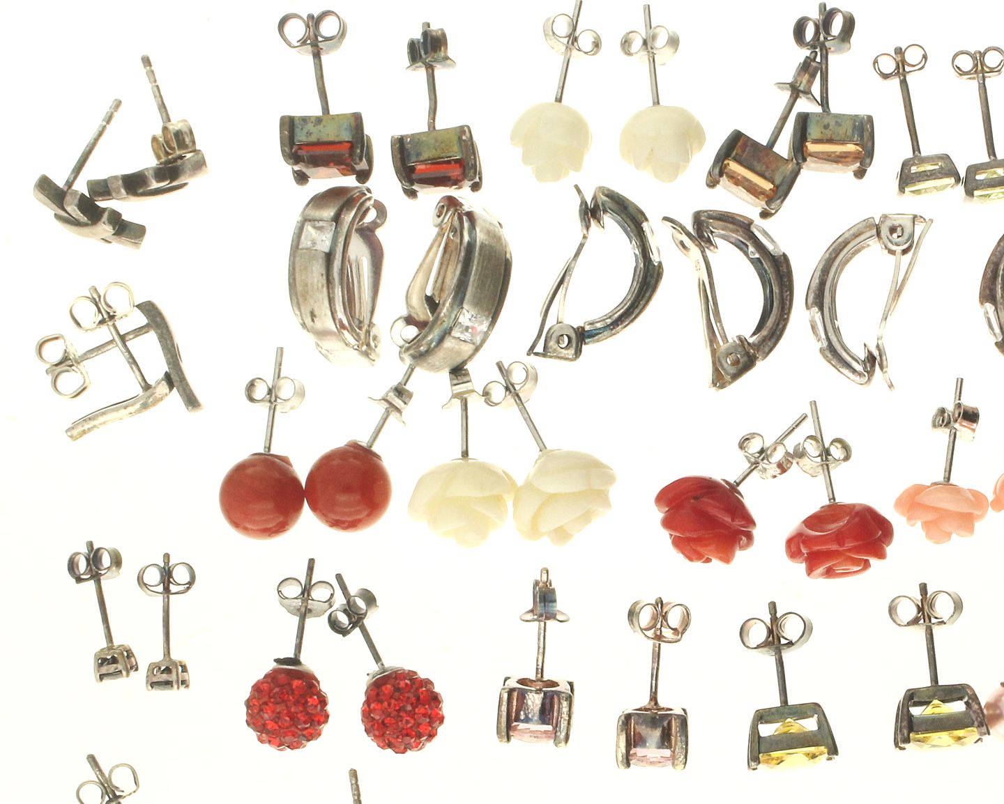 En samling på 28 par ørestikker, 4 par øreclips, 2 vedhæng samt 1 halskæde primært af sterling sølv. Samlet vægt: ca. 84 gr.