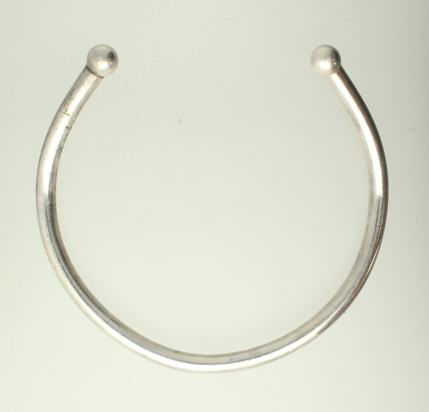 Halsring af sølvholdigt metal. Ø. 14 cm. Vægt: ca. 77 gr.