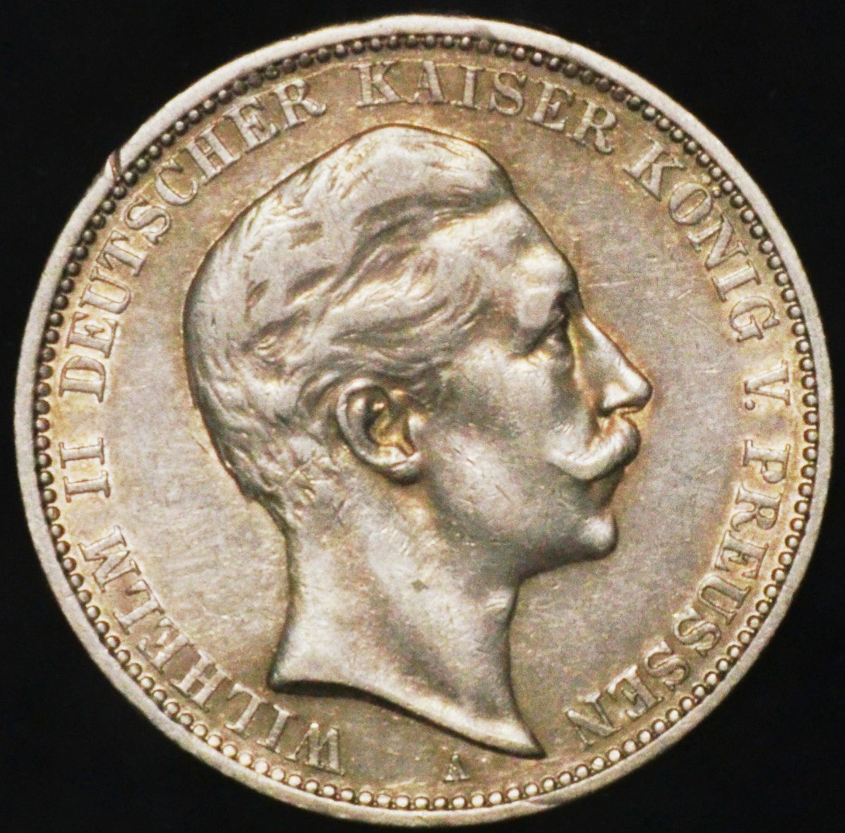 Preussen - 3 Mark - 1908 A - Wilhelm II - Sølv - KM# 527