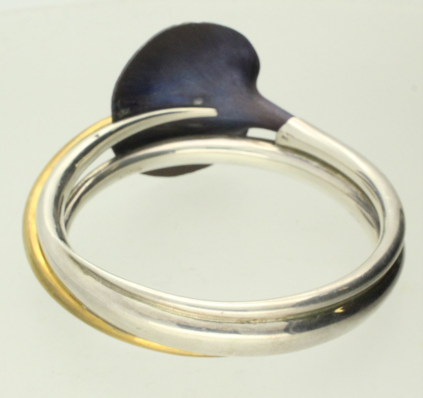 Armring af sølv og forgyldt sølv dekoreret med blå blomst. Ø. ca. 7,5 cm. Totalvægt: ca. 63,6 gr.