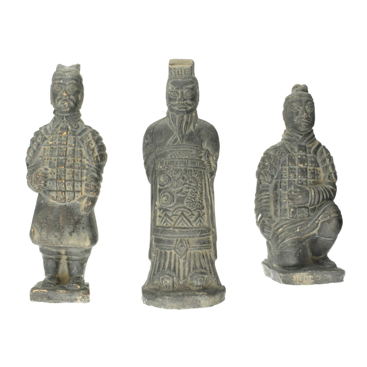 Tre orientalske figurer af terracotta. H. ca. 10- 12 cm.