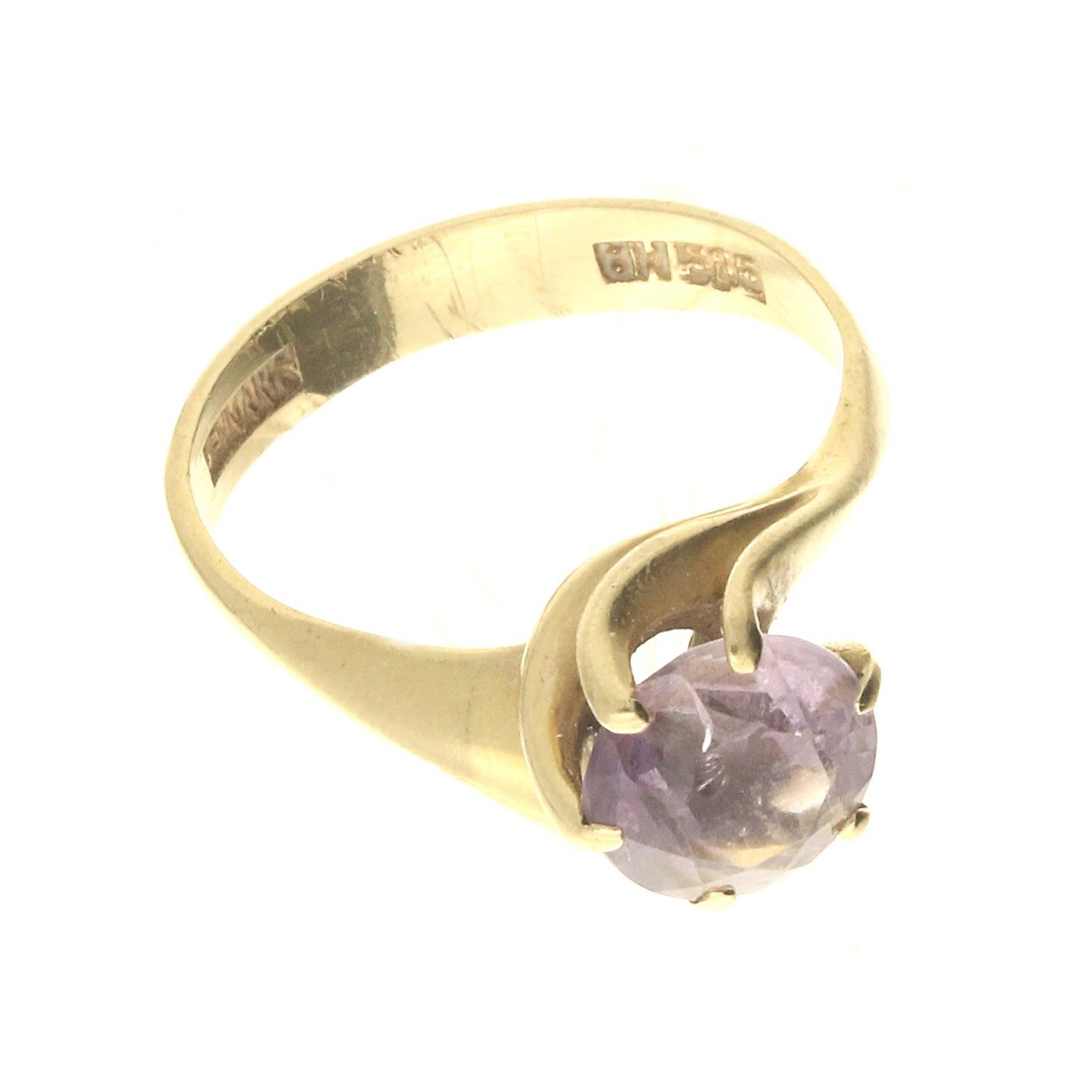 Ring af 14 kt. guld fattet med lilla sten. Ringstr: 54. Vægt: ca. 3,99 gr.