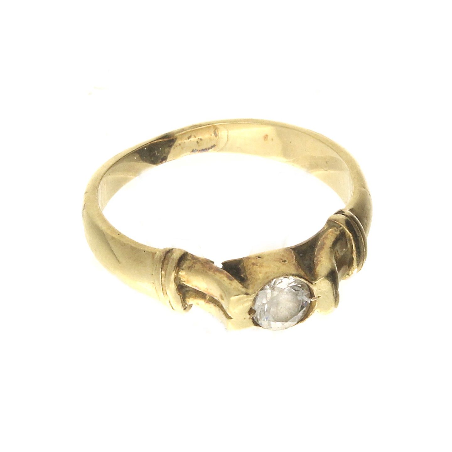 Ring af 14 kt. guld fattet med klar sten. Ringstr: 52. Vægt: ca. 3,20 gr.