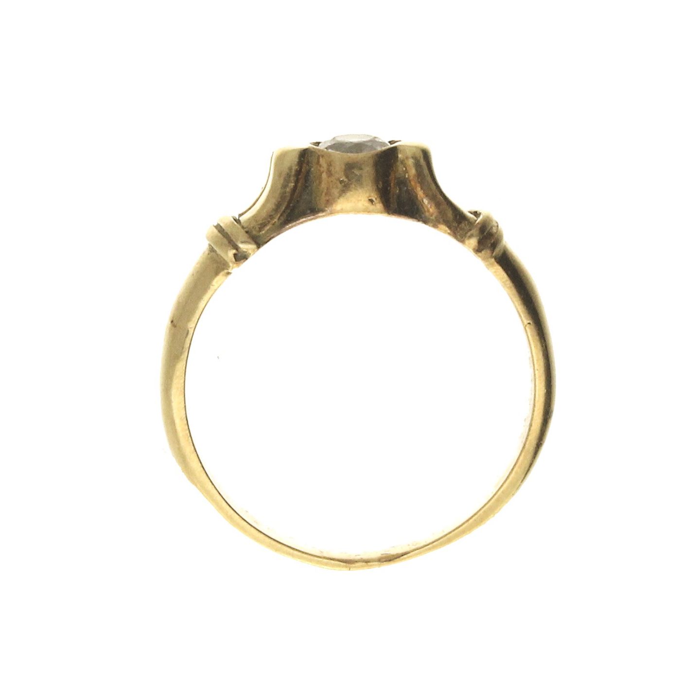 Ring af 14 kt. guld fattet med klar sten. Ringstr: 52. Vægt: ca. 3,20 gr.