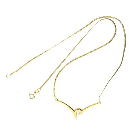 Halskæde af 8 kt. guld integreret vedhæng. L. 43,5 cm. Vægt: ca. 3,36 gr.