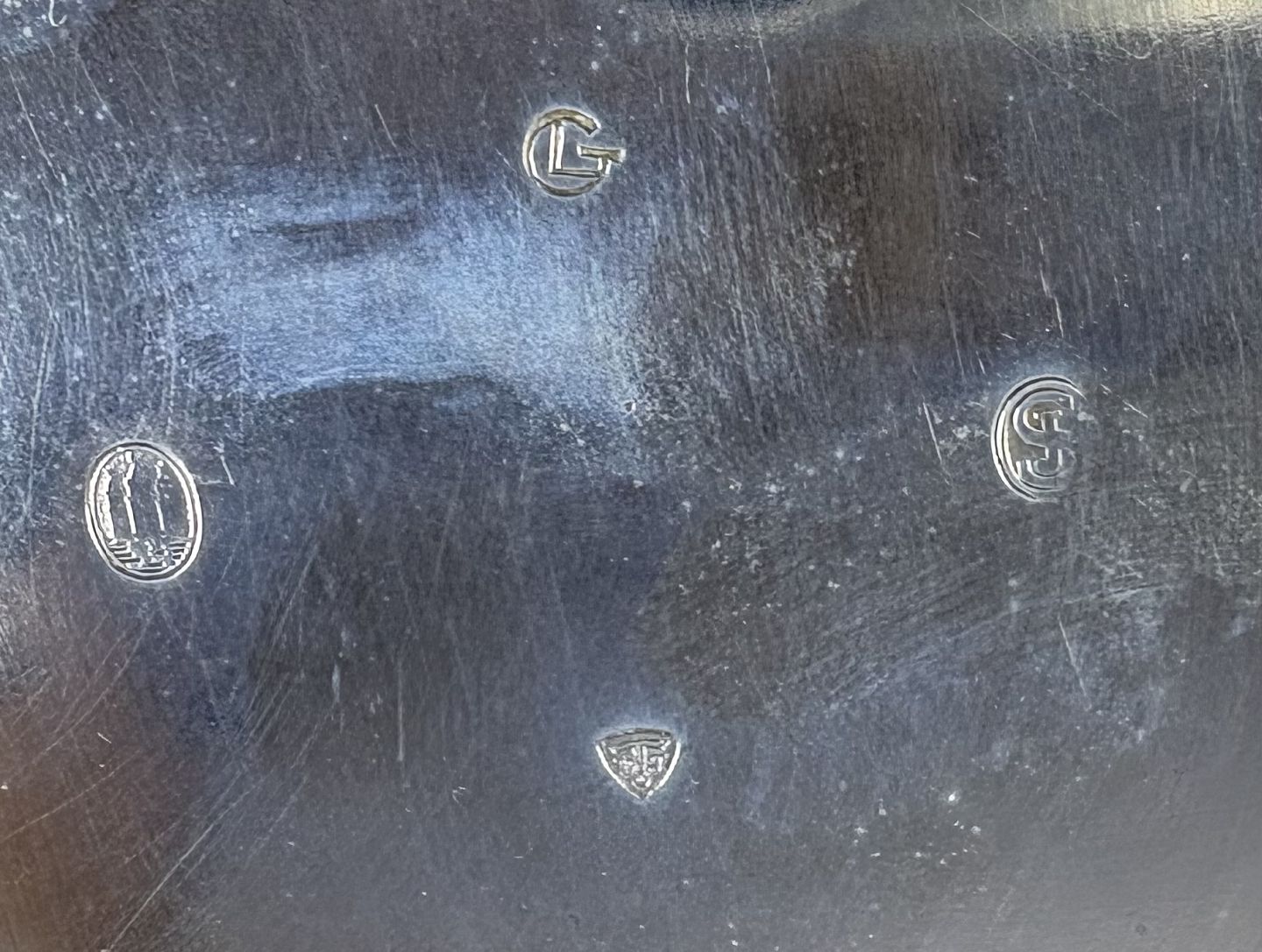 Skål / opsats af tre tårnet sølv. H. 11 cm. Ø. 25 cm. Vægt: ca. 723 gr.