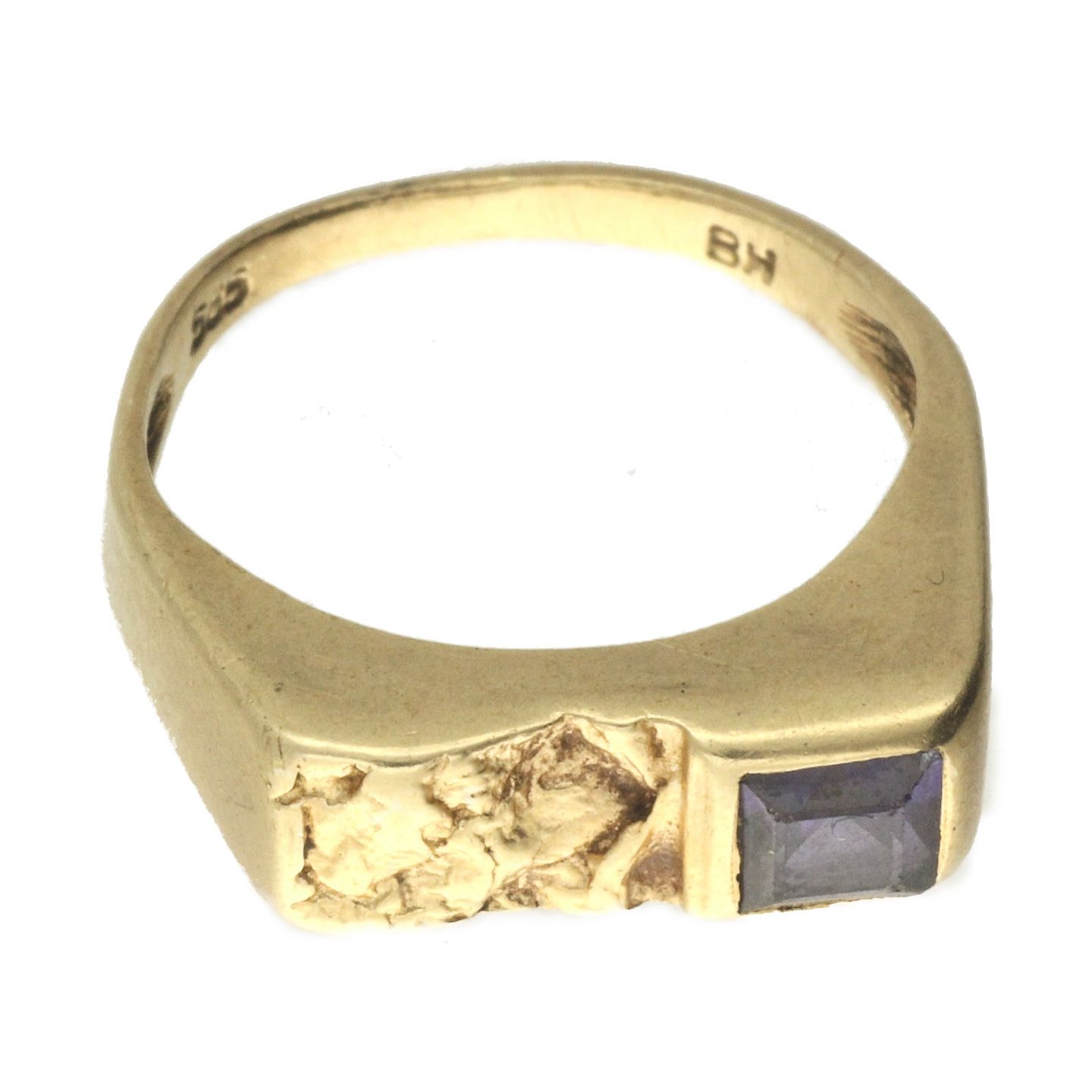 Ring af 14 kt. guld fattet med blå sten. Ringstr: 55. Vægt: ca. 3,59 gr.