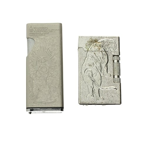 Fremstår brugt, en med indgravering. Trænger til gaspåfyldning. Ebuy.dk garanterer ikke for funktionaliteten. Ikke testet.