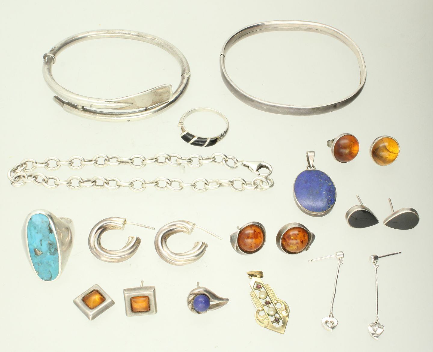 To armringe, to ringe (en med skade på emalje), et par creoler, tre par ørestikker fattet med rav (en med defekt ørestik samt flere manglende låse), to par øreringe, en enkelt ørestik, et vedhæng samt en armlænke.