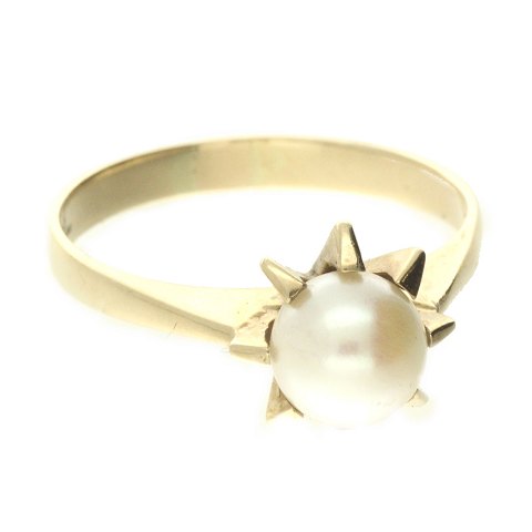 Ring af 8 kt. guld fattet med kulturperle. Ringstr: 55. Vægt: ca. 2,41 gr.