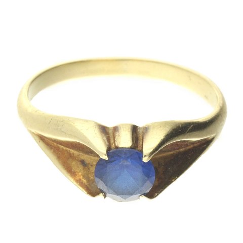 Ring af 14 kt. guld fattet med blå sten. Ringstr: 55,5. Vægt: ca. 3,12 gr.