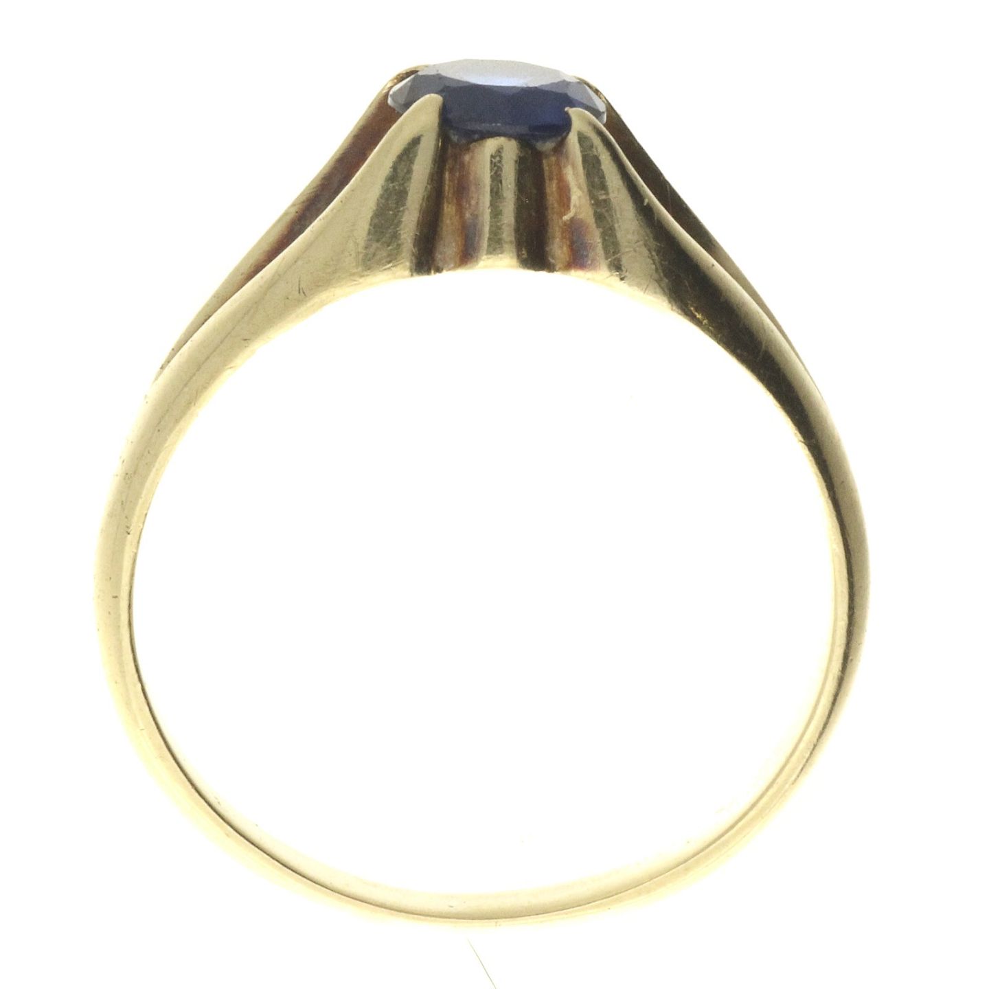 Ring af 14 kt. guld fattet med blå sten. Ringstr: 55,5. Vægt: ca. 3,12 gr.