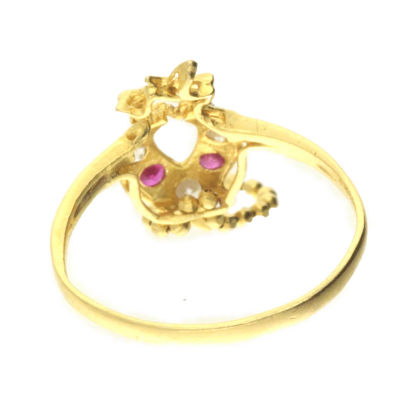 Ring af 21 kt. guld fattet med klare og røde sten. Ringstr: 51. Vægt: ca. 1,86 gr.