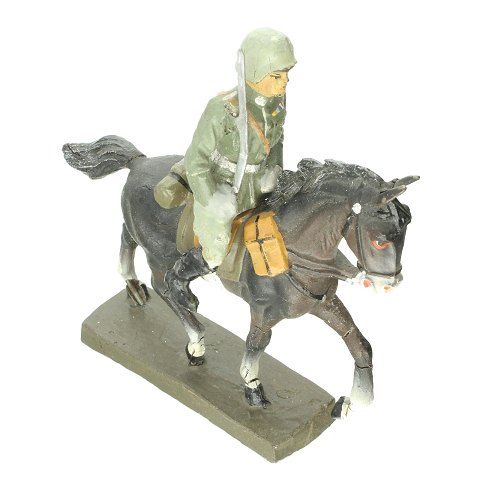 Elastolin - Tysk officer på hest, ca. 1937-1945. L. ca. 9,5 cm. Fremstår med små revner, bl.a. på hale og hestens ben.