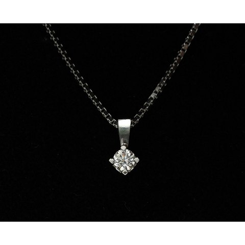 Halskæde med solitaire vedhæng på i alt ca. 0.25 ct. Længde på halskæden: 45,5 cm. Vægt: ca. 5,31 gr. Leveres i smykkeæske.