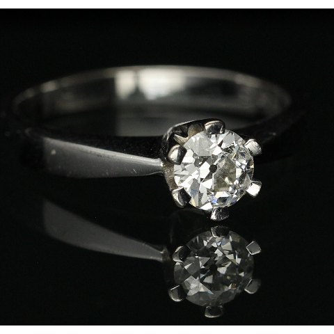 Solitairering udført af 14 kt. hvidguld prydet med en diamant på ca. 0.55 ct. Ringstr. 56,5. Vægt: 4,52 gr. Leveres i smykkeæske.