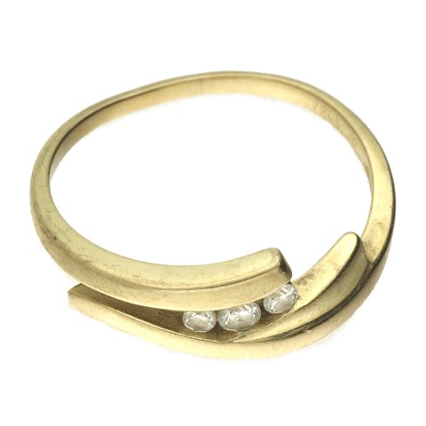Ring af 8 kt. guld fattet med klare sten. Ringstr: 53. Vægt: ca. 1,62 gr.