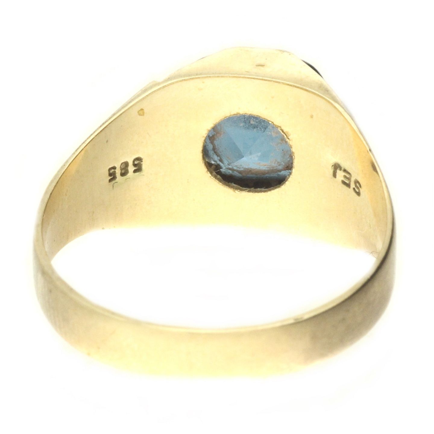 Ring af 14 kt. guld fattet med blå sten. Ringstr: 55. Vægt: ca. 3,02 gr.