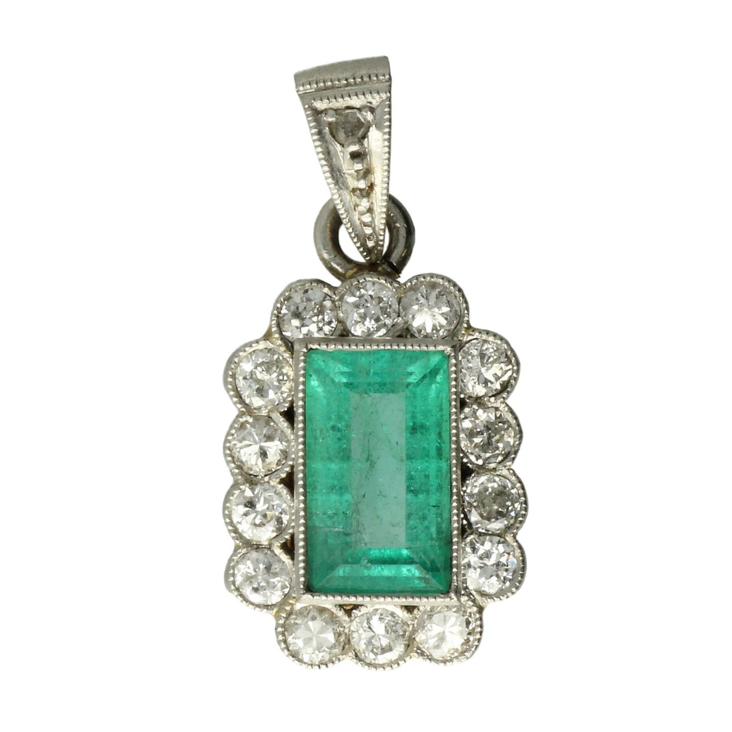 Vedhæng af 14 kt. guld fattet med smaragd samt 14 brillanter på i alt ca. 0.14 ct.