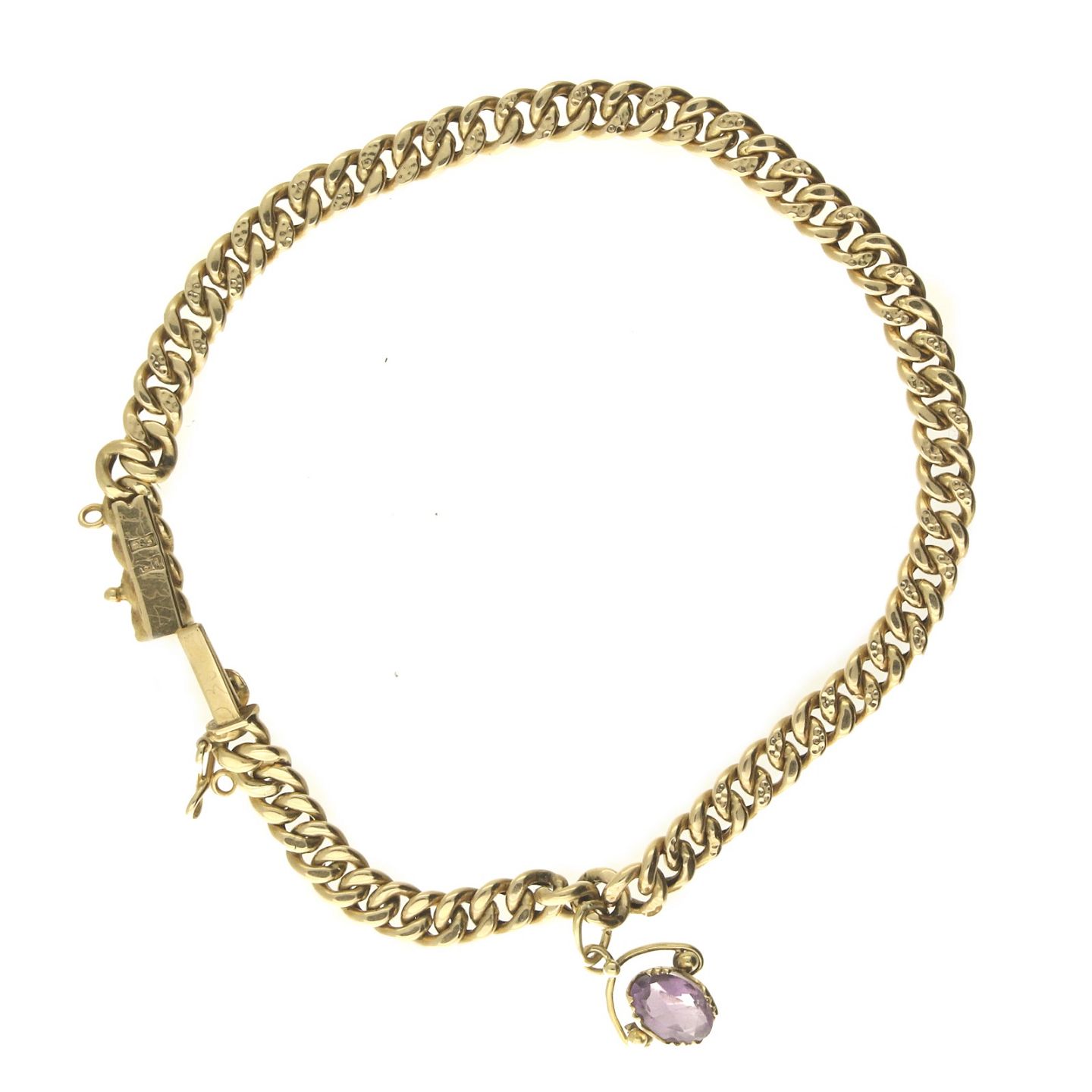 Flad panser armlænke af 14 kt. guld fattet med ametyst
