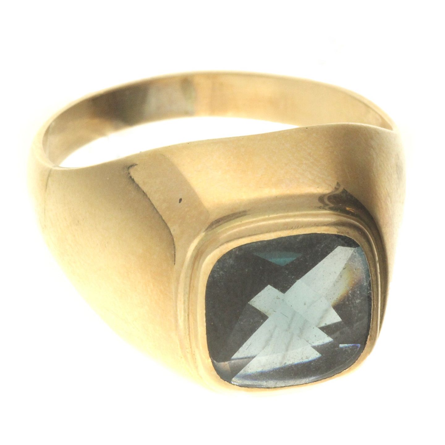 Ring af 14 kt. guld fattet med smykkesten. Ringstr: 62. Vægt: ca. 5,78 gr.