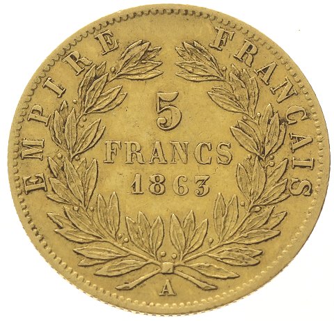 Frankrig - 5 francs - 1863 - A - Napoleon III - guld