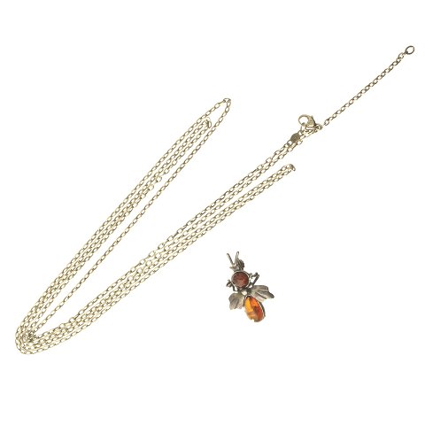 Samt ubekendt broche af sølv prydet med rav