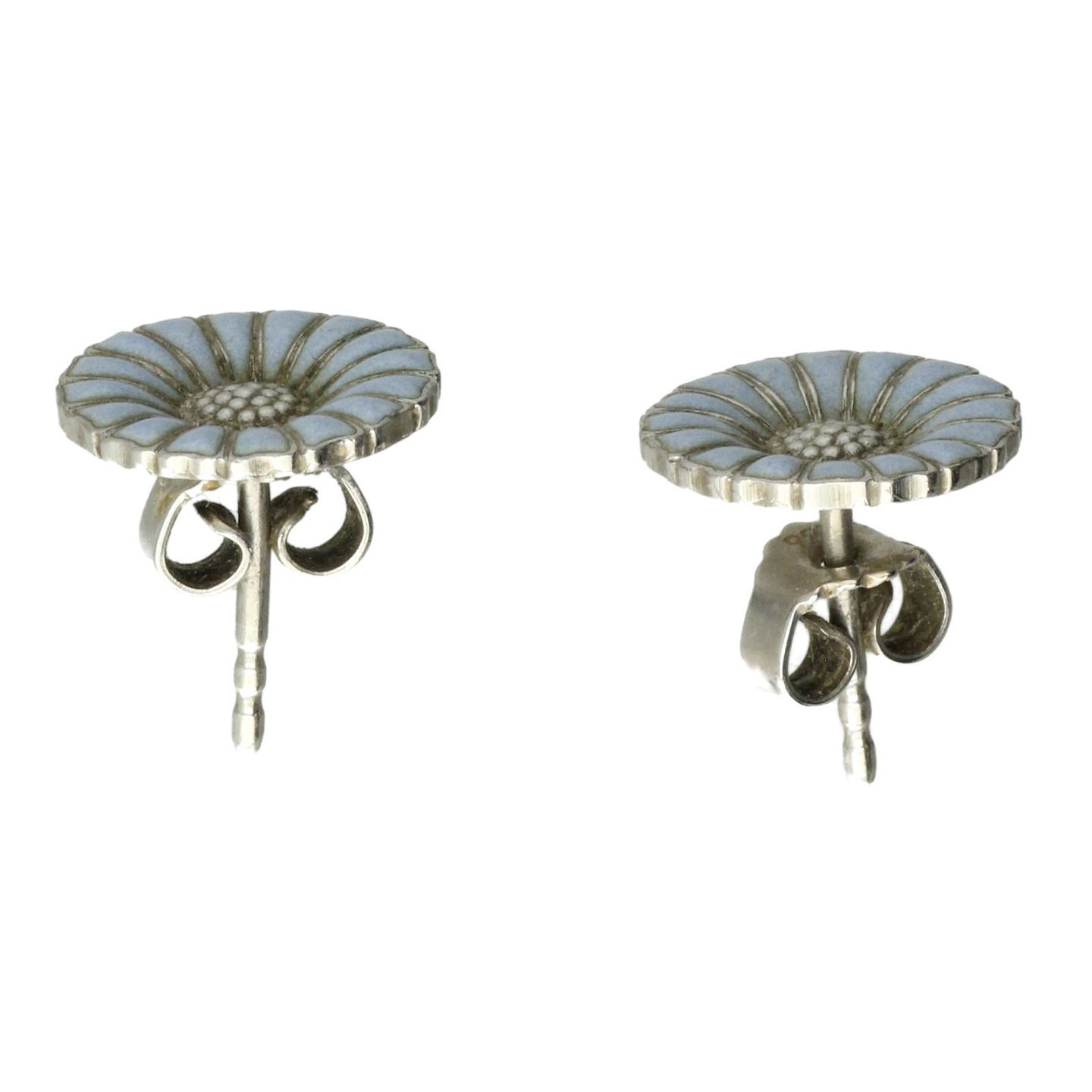 Georg Jensen - Par daisy / marguerit ørestikker udført af sterling sølv og blå emalje. Ø. ca. 11,3 mm. Vægt: ca. 2,7 gr. Stemplet GJ efter 1945, 925S.